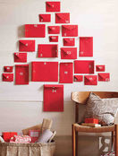 Адвент календарь на Новый год может стать прекрасным украшением интерьера. Только представьте: малыш просыпается и каждое утро видит силуэт елки над своей кроватью. А на елке — сюрпризы в объемных звездочках из разноцветной бумаги. Ну как тут на радоваться наступлению праздника? Кстати, новогоднее деревце можно собрать из самих подарков. Каждый день ребенок будет открывать коробки с ними, начиная с той, что на самой верхушке.