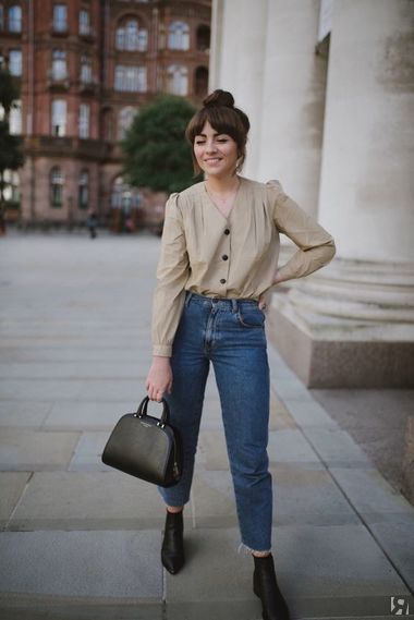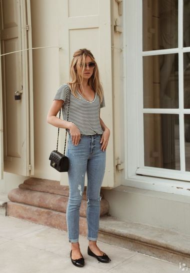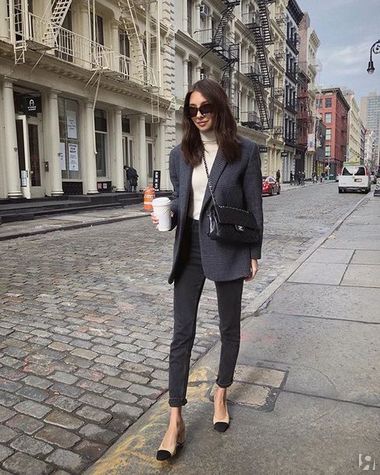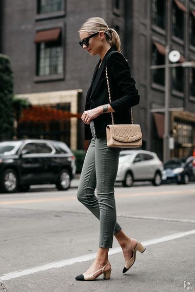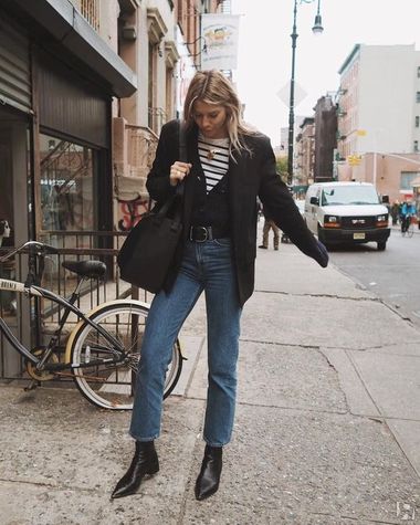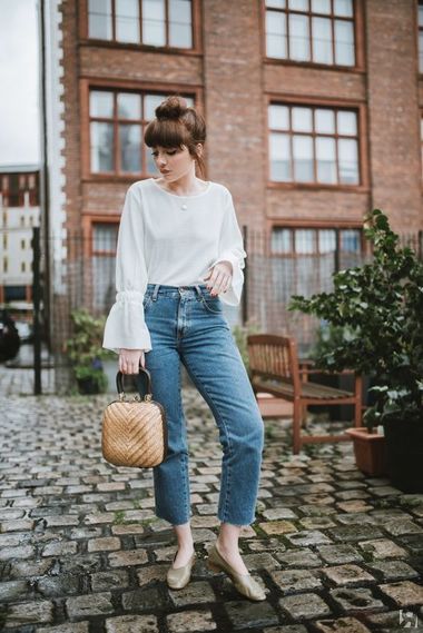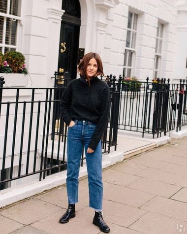 Осенью и зимой трендовые джинсы идеально сочетаются с ботильонами, ботинками на шнуровке, челси, и не нужно беспокоиться, что соберешь штанинами грязь с мостовой. А в офисе потом наденьте элегантные туфли-лодочки — будет видно лодыжку, что визуально стройнит любую фигуру.