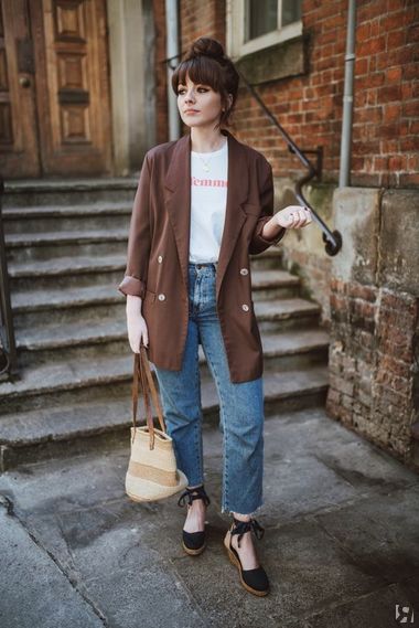 Поскольку модель очень спокойная и классическая, ее можно вполне адаптировать в осенний офисный гардероб, дополнив рубашкой и жакетом. Они очень хорошо смотрятся как в деловой стилистике, так и в расслабленной, для прогулок.