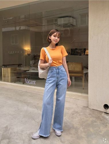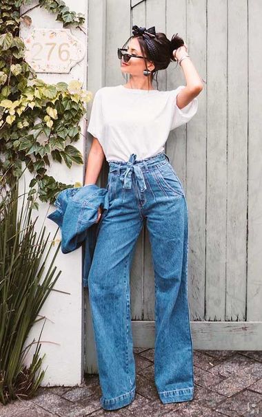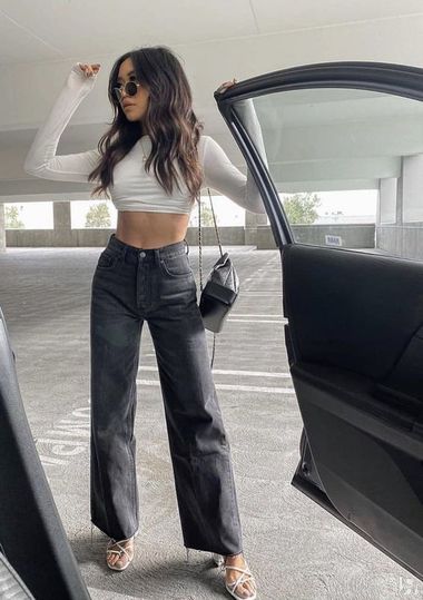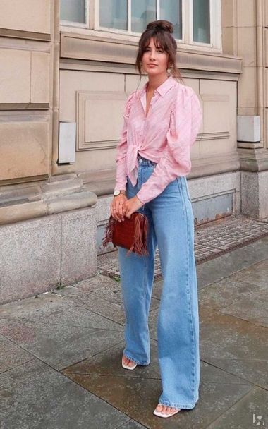 Для высоких девушек актуальные джинсы wide leg идеальны с обувью на любом ходу, миниатюрным рекомендую каблук.