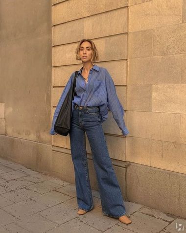 Я бы назвала их «брюки палаццо, только из денима». Огромное преимущество модели в том, что в таких трендовых джинсах ноги кажутся «от ушей» при условии высокой посадки и плотного облегания в области таза.