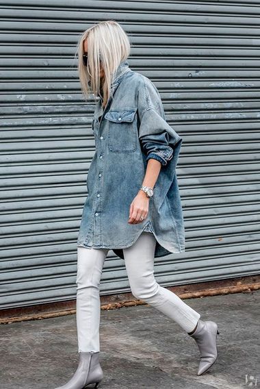 На холодный сезон рекомендую выбрать темные оттенки денима: синие, черные, серые без потертостей, высветленных полос и разрезов.