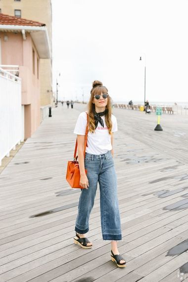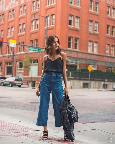 Самые актуальные модели: очень широкие кюлоты, кюлоты клеш и джинсы клеш полной длины — вариант для самых смелых модниц!