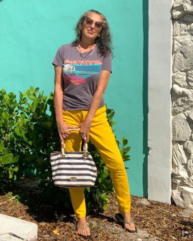 Цветные женские джинсы предлагаю носить или в монохромных образах (например, все синее) или комбинировать с основными базовыми цветами: черным, белым, серым и бежевым.