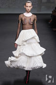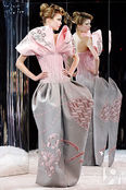 Публике были представлены пышные и прямые платья с корсетами и поясами, подчеркивающими талию. Казалось, они пришли из прошлых веков, лишь слегка изменившись в соответствии с требованиями времени. Как будто кутюрье взял ножницы и отрезал длинные юбки и шлейфы у старинных нарядов.