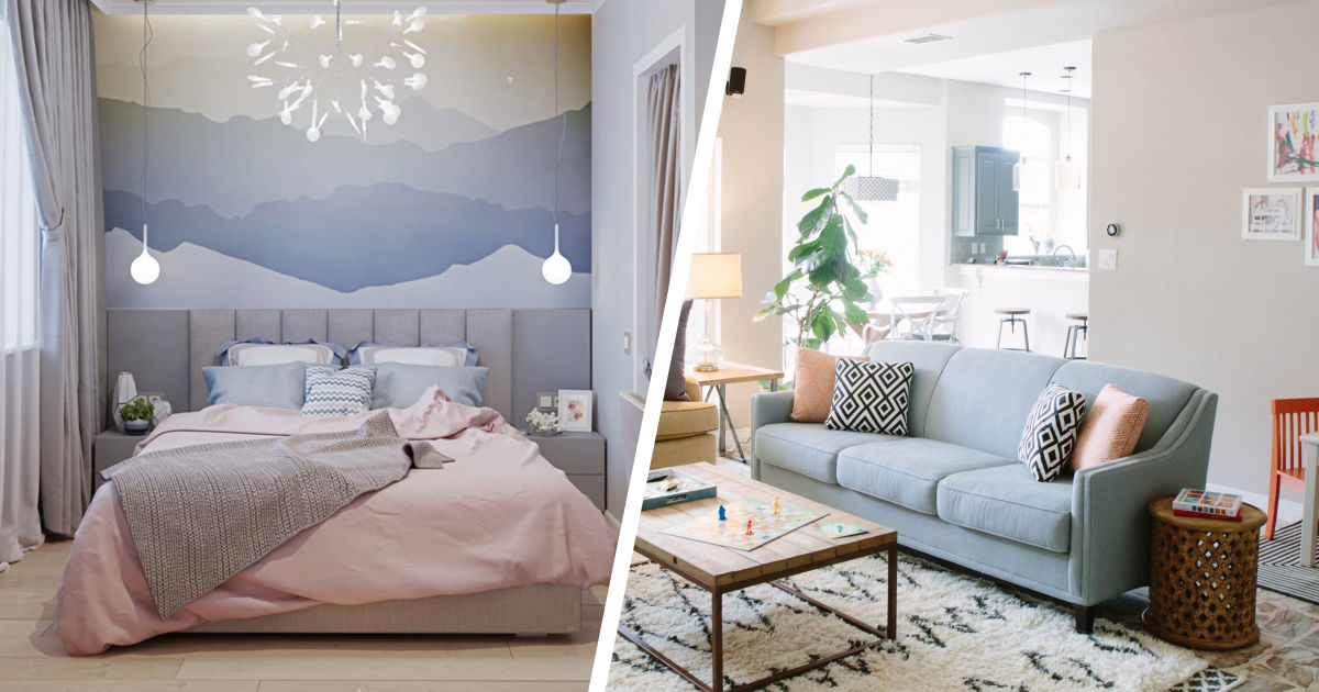 Используйте сочетание при покраске стен (покрасьте две стены в один оттенок, а другие две — в другой) или в мебели и декоре. Особенно эффектно нежно-голубые и пыльно-розовые стены будут смотреться на фоне светлых дверей и полов.