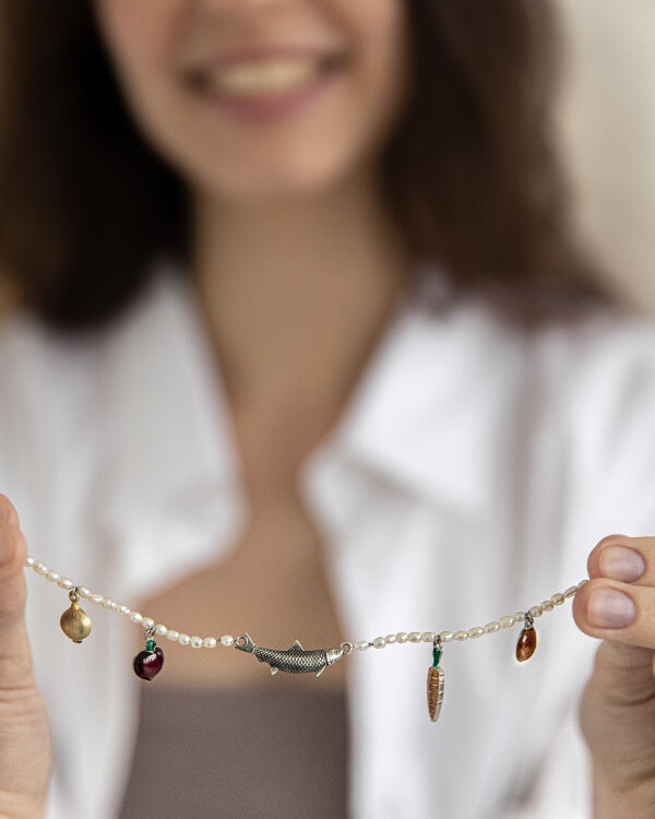 — Мое вдохновение — это результат насмотренности, наблюдательности и глубокого знания ювелирного искусства. Как правило, оно обостряется во время путешествий. Так, джекеты с витражной эмалью появились у нас после того, как я побродила по старинным парадным Санкт-Петербурга, рассматривая уцелевшие витражи. А «Селедка под шубой» — после того, как я увидела у кого-то на одежде смешной принт. Прототипом «Фиги» послужили средневековые украшения, которые вырезали из камня и использовали как оберег.