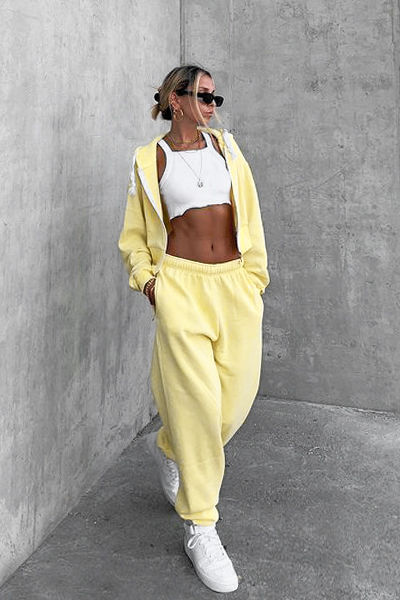 Кроп-топ отлично смотрится со спортивными костюмами, велосипедками или обычными джоггерами — так можно и на тренировку пойти, и на прогулку. Дополните образ бейсболкой и изящным кулоном, подчеркнув лебединую шею и острые ключицы.