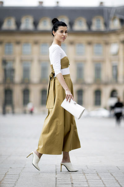 Еще один эффектный вариант для тех, кто хочет выглядеть стильно, но не желает оголяться. Стритстайлеры уже давно носят корсетные кроп-топы с любимыми летними платьями, создавая силуэты, подчеркивающие талию. В таком сложносочиненном луке вы можете смело идти на работу — дресс-код не будет нарушен.