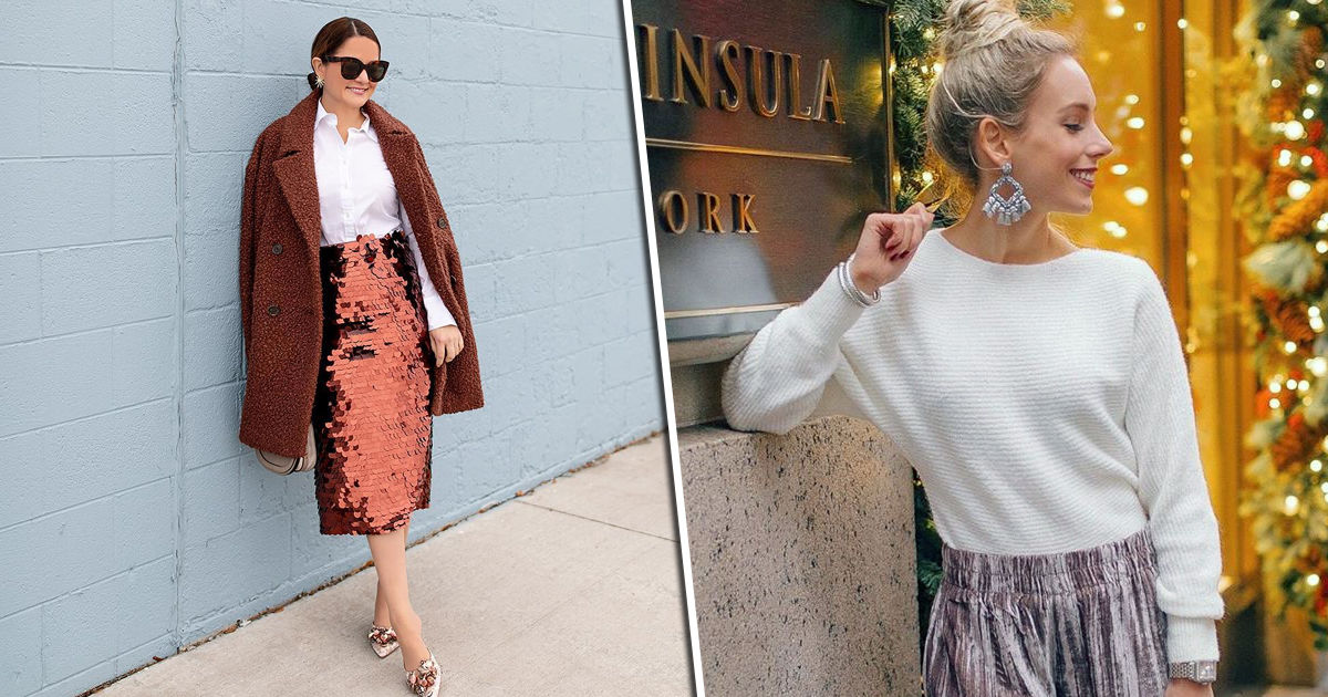 Юбка, украшенная пайетками или блестками, наверняка, окажется в виш-листе у многих. Сомневаетесь, пригодится ли она вам после новогодней вечеринки? Справедливый вопрос. Для себя мы решили так: будем носить юбку зимой на свидания с тонким шерстяным свитером, а летом — на вечеринки с бланковой футболкой и однотонными туфельками.